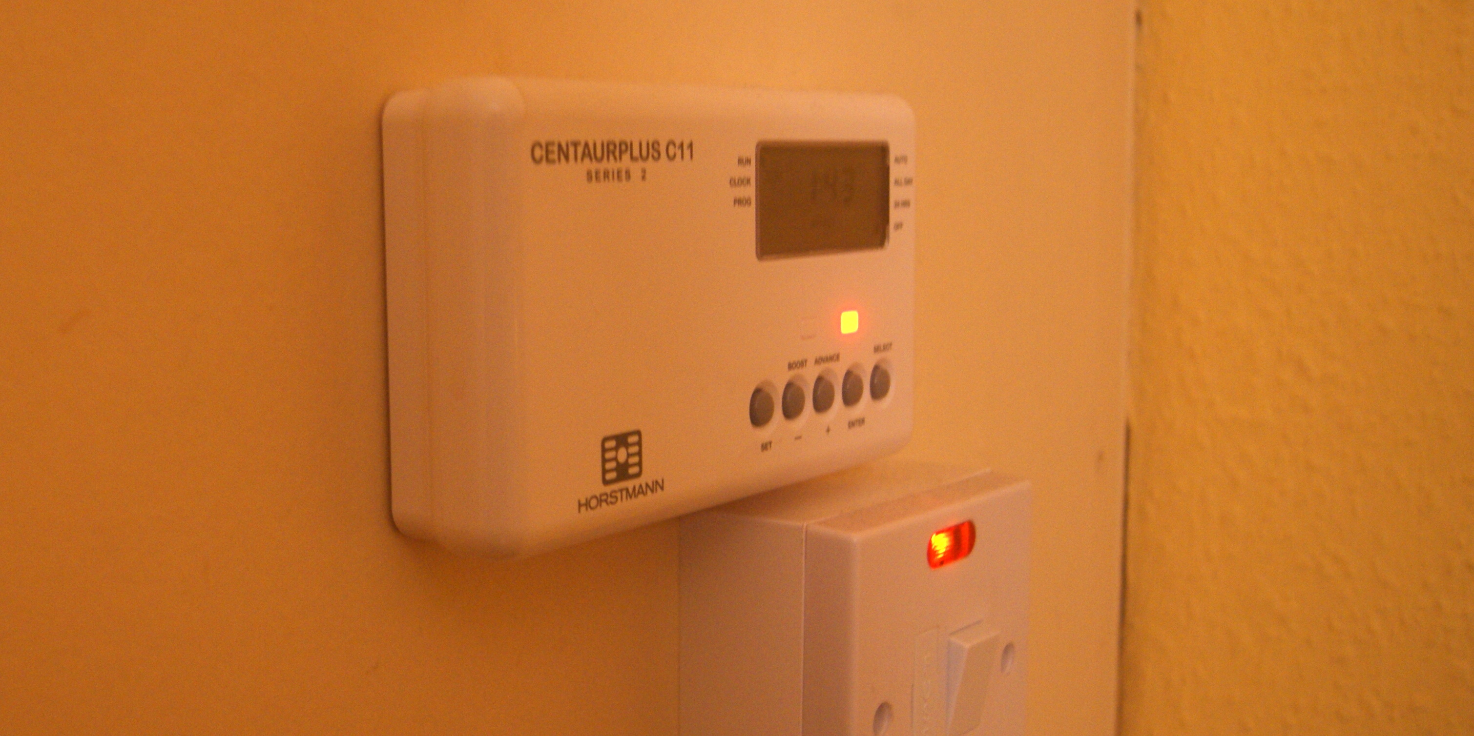 Working in a 1 bed apartment it was decided that the best course of action was to put the boiler where there was ample room (the bedroom), but to separately locate the controls in the living room where it would be accessed most (the living room)